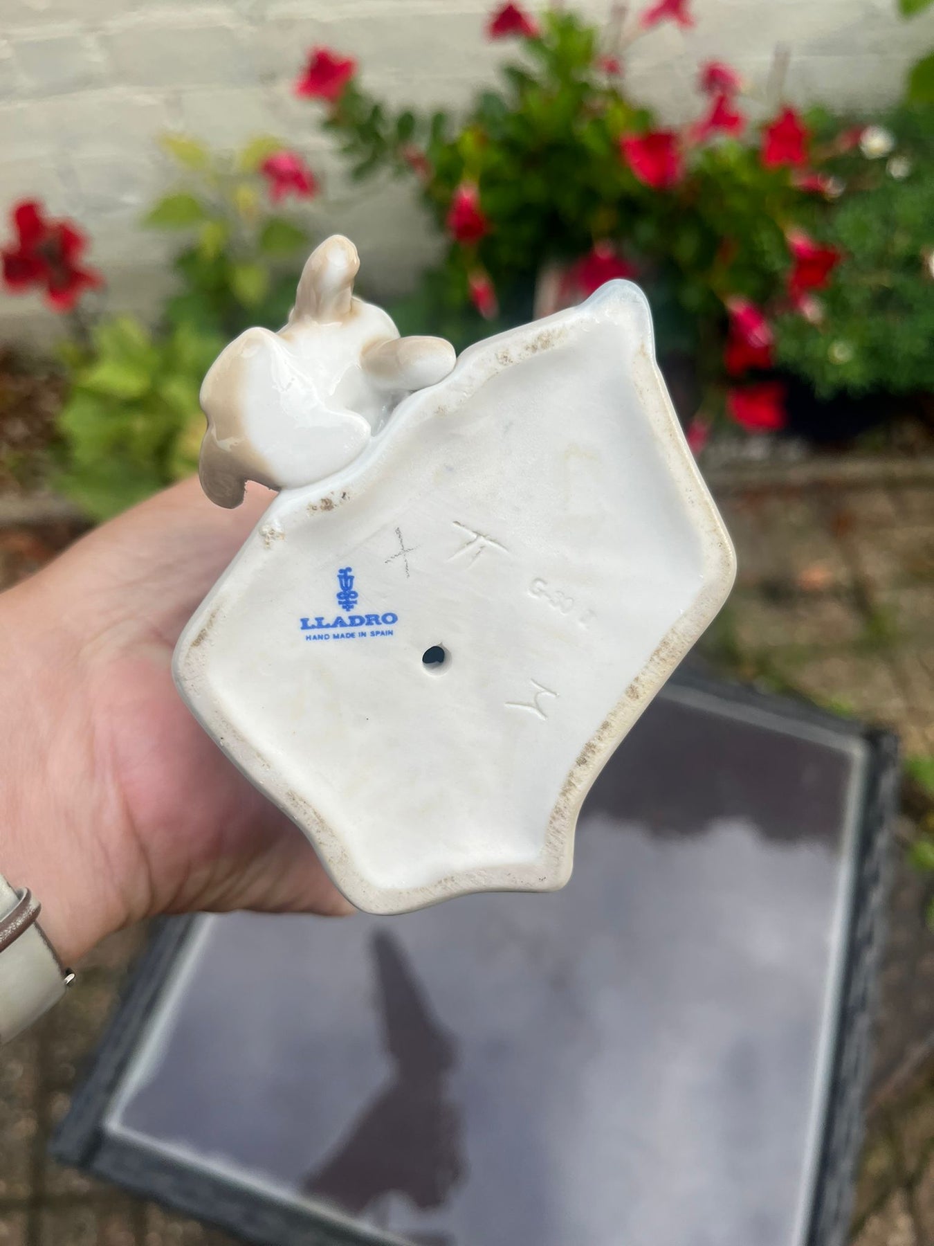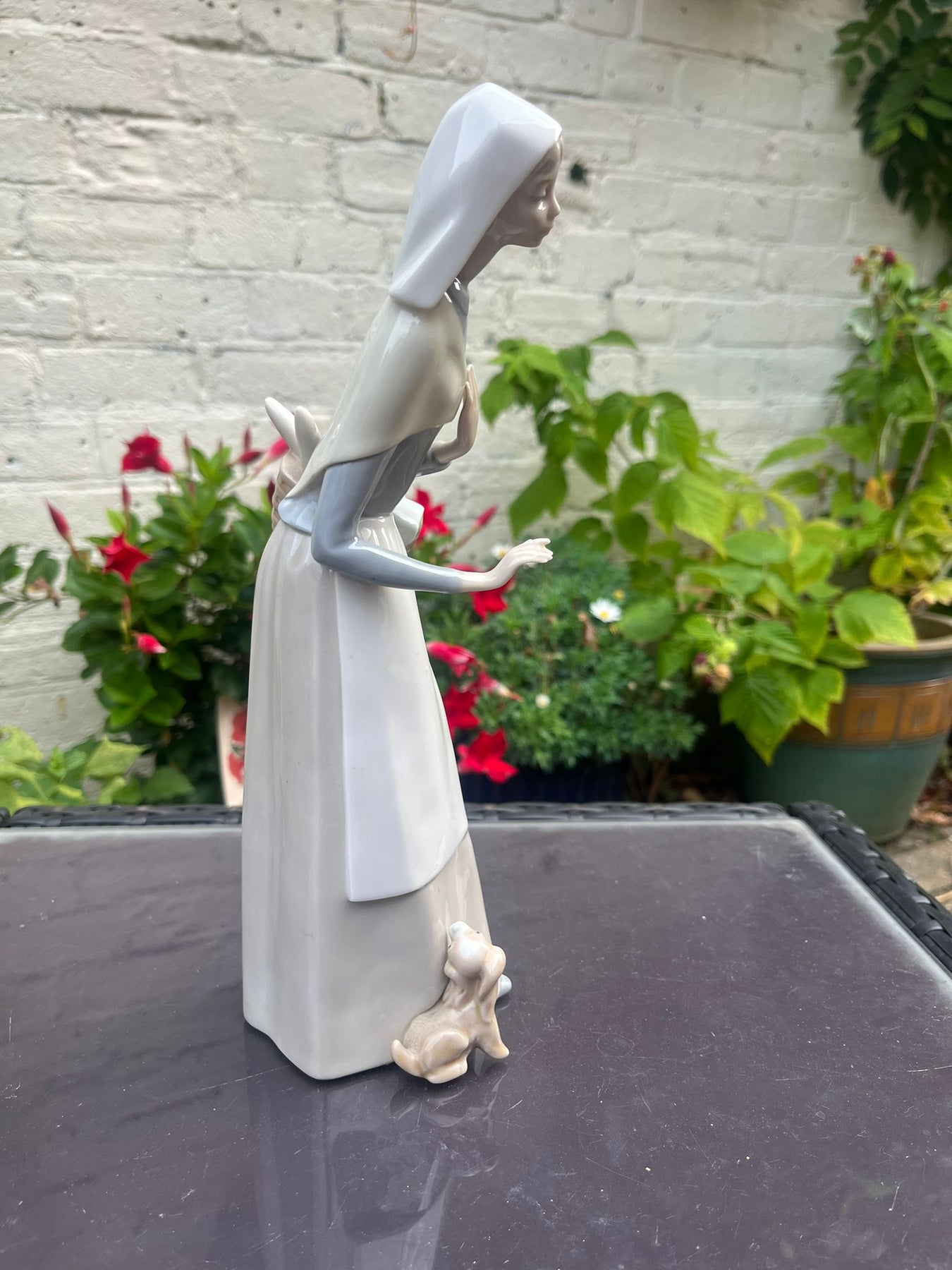 This exquisite Lladro figurine depicts a shepherdess, holding a basket of two French loaves, with her trusty dog. Crafted with the utmost care and attention to detail,