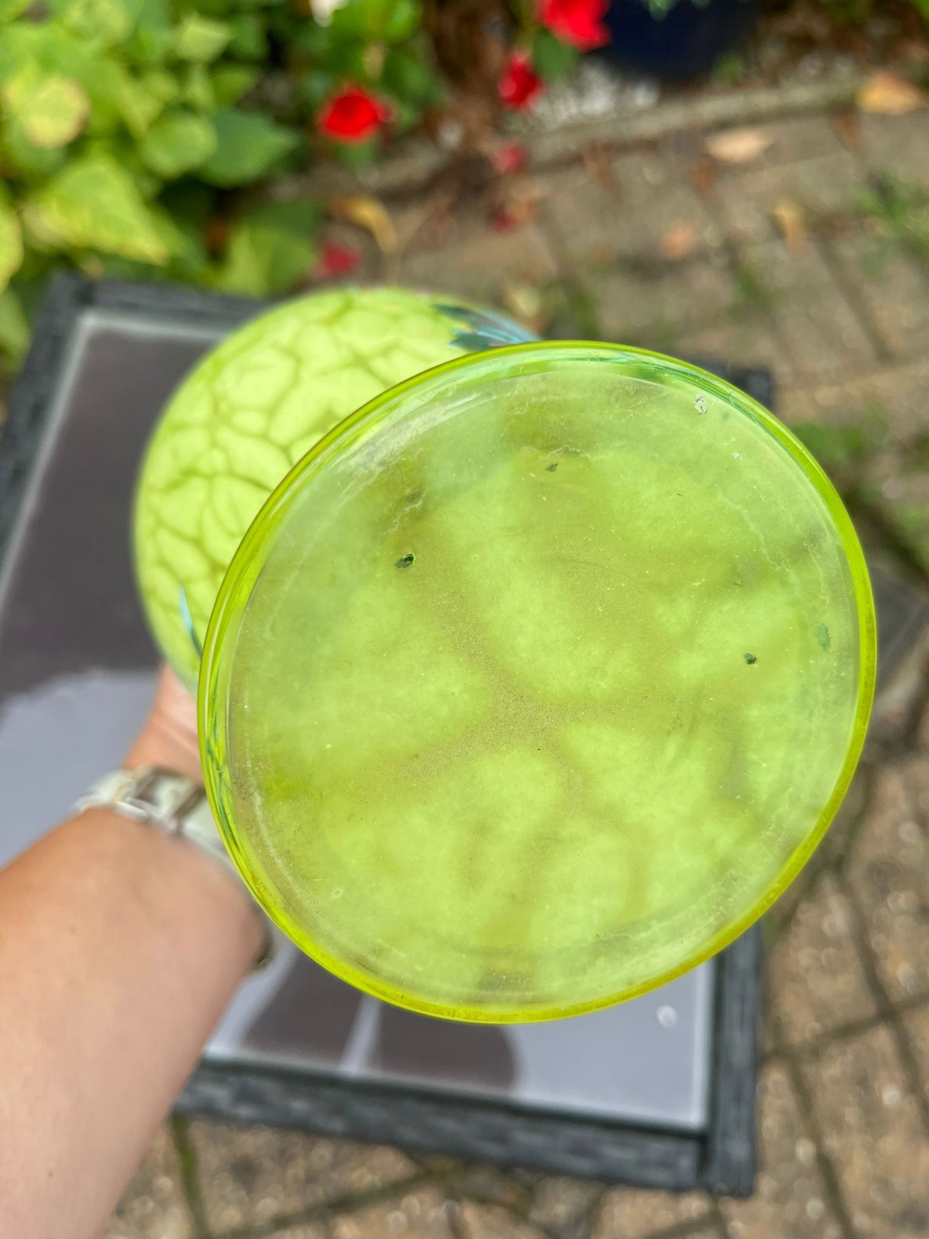 Exquisite French 19th Century Uranium Glass Vase with Enamelled Decoration Approx 11” in height £120