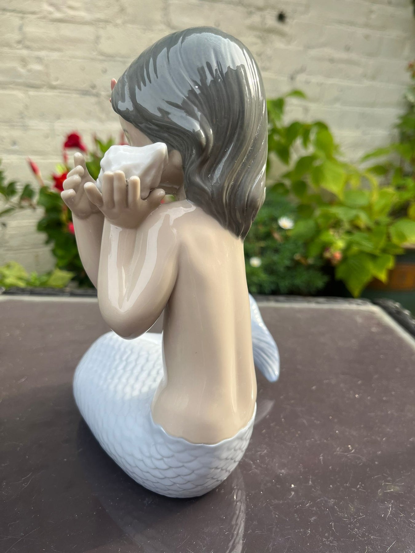 The Nao #1367 “Sounds of the Sea” figurine by Lladró is a rare beautifully crafted porcelain piece featuring a mermaid as the subject. Handmade in Spain in 2000 and now retired, this mermaid figurine captures the essence of the sea with its intricate details and artistic design.